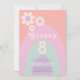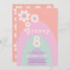 Groovy oito, comemora seu 8º aniversário com este legal retrato da década de 70 coloração pastel lavanda roxo, rosa, horta verde e laranja arco-íris oitavo convite de aniversário. Com simples design de margarida e modelos fáceis de usar, este convite personalizado define o que é visto para uma legal festa de garotas hippie. Arte original da artista Catherine Sweetman