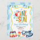 Groovy One in the sun Pool Party Invitation, Summer Outdoor Pool Party Boy Birthday Invite, Editable Kids First Birthday Invite