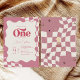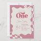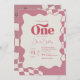 Convite Groovy One Retro Pink Checkered 1st Birthday Invit