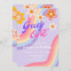 Convite Groovy One Retro Rainbow primeiro aniversario