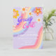 Groovy One Retro Rainbow Invitation em fundo roxo para meninas