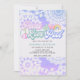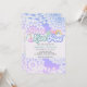 Convite à Piscina de Aniversário do Peace Love com padrão de coloração de gravata pastel em tons de lilás e azul. A design apresenta alface retrógrada e corações do estilo 70 flores arco-íris e sinal de paz. Fácil de personalizar e versátil para adequar-se a todos os tipos de temas, como a festa de tingimento de gravata, temas hippie dos anos 60 ou 70 e temas hippie de entalhe.