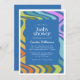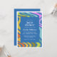 Convite Groovy Retro Abstrato Rainbow Chá de fraldas Azul