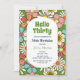 Convite Groovy Retro Hippie Flower Hello 30 Aniversário