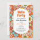 Convite Groovy Retro Hippie Flower Hello Quarty Birthday