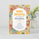 Convite Groovy Retro Hippie Flower Hello Setenta Aniversár