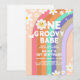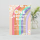 Groovy Um boho daisy arco-íris primeiro aniversário Convite