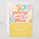 Convite Groovy Wild Três Retrô Sunshine Rainbow Daisy