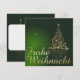 Grünes Weihnachtsmočič mit Weihnachtsbaum aus goldenen Sternen mit dem Schriftzug Frohe Weihnacht em Deutsch, em Espanha, em Französisch, em inglês, Einladung / Cartão plano