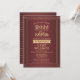 Você pode guardar um segredo? Convide colegas, colegas de trabalho, família e amigos para uma elegante e excitante celebração de aposentadoria surpresa com convites de festas de burgundy e ouro personalizados. Toda a redação desta modelo é simples de personalizar, incluindo a mensagem que diz "Shhh! É uma SURPRESA." O design apresenta uma fronteira moderna listrada sobre um fundo ombre vermelho escuro, típica tipografia vintage deco e caligrafia com na moda. Observe que o ouro é impresso a cor, não a folha metálica. A design neutra do ponto de vista do gênero também é adequada para um homem ou para uma mulher. Parabéns e feliz aposentadoria!