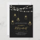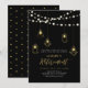 Celebre seu dia especial com este convite de festas na moda moderno de aposentadoria. Este sofisticado design apresenta uma na moda tipografia, belas luzes de cordas e gráficos de fixação de luz geométrica em textura dourada. Você pode personalizar o texto e a cor do plano de fundo. Convidado perfeito para uma celebração moderna de ouro e aposentadoria negra.