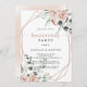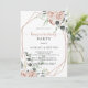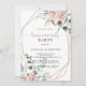Este convite de festas geométrico típico de rosa rosa-rosa é perfeito para um evento rústico. O design apresenta rosas poeirentos elegantes e cor d'água e folhagem verde, perfeitamente reunidos em belos buquês, enfeitando uma encantadora estrutura geométrica.