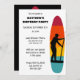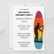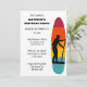 Estes convites de festas de temas de embarque são fáceis de personalizar com os detalhes do seu partido. Eles são perfeitos para jogar festas para os carteiros ou para outros eventos especiais. Eles apresentam uma ilustração de um SUP ou de um conselho de rebordo retratado em cores vibrantes do pôr do sol com uma ilustração da silhueta a preto de alguém que se embarca de pá. O gráfico é colocado sobre um fundo branco com todos os detalhes do seu partido em letras negras. O verso tem um gráfico correspondente a um fundo preto.