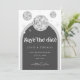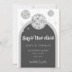 Este design mede 5 x 7 polegadas/12,7 x 17,8 cm e é perfeito para convites. Volte a tempo com o nosso casamento com a Bolsa de Disco Retroativa guarde a data Convites e Recor. Mergulhe na nostalgia dos anos 70 com bege cinza e arcos de cinza, realçados por fontes cintilantes prateadas. A icônica bola retrô disco toma palco central, evocando uma era de glamour da discoteca, enquanto mantém um toque de charme feminino. Prepare-se para celebrar a noiva em estilo retrô verdadeiro. #zazzlemade