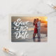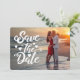 O anúncio do seu casamento. Use a imagem horizontal do seu cheio com "Salvar a Data" sobreposta à foto. Gradiente escuro opcional para o script branco se destacar se seu plano de fundo é muito claro. Apenas remova o gradiente se você não precisar dele. A cor de fundo é personalizável.