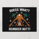 Playful Christmas humor featuring a reindeer bending forward and looking upside down between its legs. A fun festive scene with winter charm and lighthearted holiday spirit.
