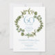 Com uma elegante guirlanda de folhagem da floresta, este convite de aniversário de casamento de 60 anos de festa surpresa botânica chique pode ser personalizado com as informações do seu aniversário de diamante especial. O verso apresenta uma guirlanda correspondente emoldurando as datas de aniversário em texto branco elegante em um fundo azul diamante. Concebido por Thisisnotme©