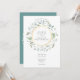 Uma grinalda decorativa de louro circunda uma borda em folha de ouro falso que contém os nomes do casal feliz. Abaixo, os detalhes do seu casamento são apresentados em texto clássico e elegante. O verso apresenta os nomes do casal dentro de uma grinalda floral e em folha de ouro falso correspondente. Desenhado por Thisisnotme©