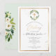 PixDezines Batizado, com guirlanda de rosas brancas de aquarela greenery e folhagens. Acentuado com uma cruz dourada e confetes acentuados com caligrafia de luxo. Todos os elementos são editáveis.
