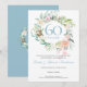 Com uma linda guirlanda floral de rosas em aquarela, este convite elegante de save the date de aniversário de casamento de 60 anos pode ser personalizado com seus detalhes especiais. O verso apresenta uma guirlanda floral correspondente emoldurando as datas de aniversário em texto branco elegante em um fundo azul diamante. Concebido por Thisisnotme©