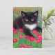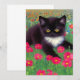 Cartão com um gato gustav Klimt tuxedo! Este adorável gatinho preto e branco se senta num campo de flores vermelhas, azuis, brancas e laranja. Um presente incrível para amantes de gatos e entusiastas de arte austríacos!