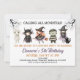 Festa de Figuras Negra de Halloween Monstros Aniversário de Aniversário da Menina de Halloween convite convite convite convite convite no aniversário com uma fila de personagens de Halloween incluindo duas bruxas bonitinhas e alguns ramos assustadores. Este convite de aniversário de Halloween é ideal para uma festa de aniversário de crianças no Halloween.