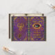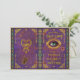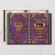 Estes convites únicos para festas de Halloween têm um feitiço mágico das bruxas que se parece em roxo, preto e ouro com muitos ornamentos coloridos. A frente se parece com o cobrir do livro ortográfico e a parte de trás se parece com uma página aberta. A frente inclui as palavras, "O Livro Ortográfico das Bruxas dos Convites Místicos para Halloween." Também inclui um globo ocular verde assustador, uma fechadura e uma chave, uma aranha e abundância de ornamentados florescem. O dorso inclui uma caneta e alguns esboços leves, como crânio, lua, cobra e muito mais. Também tem as palavras "Chant under a Full Moon". Use as modelos de texto para adicionar as informações de sua parte. O design inclui um poema original que você pode escolher manter se quiser - basta alterar o nome da sua família e as linhas de endereço. Estes convites foram feitos com muitas horas de carinho e vão entreter seus convidados antes mesmo de chegarem. Tenha um feliz Dia das Bruxas!