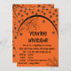 Convide seus hóspedes para uma comemoração arrepiante com este convite do festival de Halloween de Spider Spooky! Apresentando um fundo laranja ousado e um padrão de aranha preta, este design define o tom perfeito para um evento assustador e cheio de diversão. Ideal para festas de Halloween ou reuniões de casas assombradas!