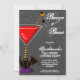 Um martini num copo com um morcego e uma aranha com a sua informação festiva em letras quentes, estes convites para festas de Halloween são convites de festas de fantasias de adultos divertidos no Halloween. Disponível como convites impressos e download instantâneo para impressão ou para envio digital. CORRESPONDENTE a itens na nossa coleção.