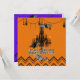 COLOR PALETTE: COLEÇÃO DE DESIGN preto, laranja e roxo: um convite divertido, caprichoso e não tão assustador do Festa de Halloween com produtos coordenadores correspondentes para completar a decoração do seu partido. Audrey Jeanne Roberts criou um padrão gráfico ousado moderno usando faixas zag chevron e bolinhas ovais. No Halloween, cores com um par de morcegos pretos de cor d'água que voam à volta da vela acesa, e que acenam com o candelabro pendurado em joias e miçangas. Acessório divertido para a temporada de outono! O texto do convite é fácil de mudar usando os campos modelo fornecidos. Designs frontais e traseiras podem ser mudadas de cor para várias combinações, se você não vir a cor que gostaria, basta nos avisar!