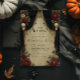 Entre nas sombras com este design do Halloween, incrivelmente elegante, com drapes pretas dramáticas, flores de creme e sotaques de caveira. Perfeito por receber uma celebração inesquecível e inspirada em gótica, esta design combina sofisticação com a quantidade certa de talento macabro.