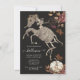 Arte Clássica Elegante arranjo botânico floral de Halloween em um fundo preto. Possui o cavalo sem cabeça embrulhado em bandagens gaze com esqueleto. Legal e não para o desmaio do coração! Excelente para qualquer festa de halloween ou até mesmo um casamento escuro ou dia da celebração dos mortos.