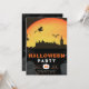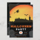 Convite Halloween Preto da Cidade Negra da Bruxa Voadora d