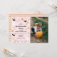 Prepare-se para uma festa de aniversário Spooktacular com este belo convite de aniversário de Halloween. Apresenta um fundo rosado e ilustrações modernas do Halloween como morcegos, doces, abóboras e fantasmas. Adicione uma foto do seu pequeno boo para adicionar gelo no bolo!