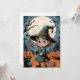 Ce design capture l’essence d’Halloween avec une sorcière tenant un balai, se tenant dans un cimetière. Le visage de la sorcière est obscurci pour préserver l’anonymat. Derrière elle, une pleine lune illumine le ciel nocturne, projetant une lueur inquiétante sur les tombes et les arbres dénudés. Deux citrouilles sculptées ajoutent à l’atmosphère effrayante, l’une avec un visage de jack-o’-lantern traditionnel et l’autre avec un motif de toile d’araignée. Des chauves-souris volent dans les airs, complétant cette scène typique d’Halloween.