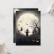 Apresentando um brilho jack-o-lanterno e lua estranha, este convite define o tom assustador perfeito para a sua festa de Halloween. (Trabalho de arte Gerado por AI)