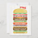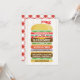 Hamburger empilhado original com cebolas, salmoura, alface, cachorro quente, queijo, mostarda, ketchup, em um fundo rústico do woodgrain. Um teste padrão vermelho do piquenique do guingão é na parte de trás do convite. Seu convidado amará este convite original. Personalize com seu próprio texto. Verifique por favor minha loja para ver se há mais como esta. Ilustração original pelo pj_design. Envie-me por correio electrónico se você precisa a ajuda. Você pode fazer a isto um cartão maior personalizando o e clicando nas opções de papel.