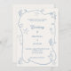 Convite Hand drawn coastal beach dusty blue ivory wedding
