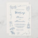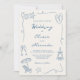 Convite Hand Drawn Coastal Beach Dusty Blue Ivory Wedding