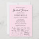 Convite Hand Drawn Doodle Bridal Shower Pink