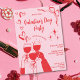 Convite Hand Drawn Pink Red Galentine's Day Cocktail Party