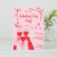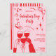 Whimsical Unique Hand Drawn Pink Red Galentine's Day Cocktail Party Invitation