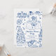 Blue and White Hand Drawn Squiggle Doodles Christmas Party Invitation.