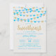 Celebrar com estilo com estes super bonitos corações amorosos "pequenos convites de aniversário". O design apresenta efeito de brilho azul e dourado pendurando corações amorosos com palavras de tipografia correspondentes.