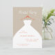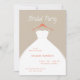 An invitation to the bride and her bridesmaids for a bridal party get-together featuring a hanging wedding dress design. Soft, minimal, and fully customizable, it’s perfect for a pre-wedding celebration. In beige, coral, and white, or it can be customized to your wedding color palette or party theme colors.