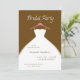 An invitation to the bride and her bridesmaids for a bridal party get-together featuring a hanging wedding dress design. Soft, minimal, and fully customizable, it’s perfect for a pre-wedding celebration. In chocolate brown, pink, and white, or it can be customized to your wedding color palette or party theme colors.