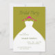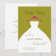 An invitation to the bride and her bridesmaids for a bridal party get-together featuring a hanging wedding dress design. Soft, minimal, and fully customizable, it’s perfect for a pre-wedding celebration. In olive, fuscia, and white, or it can be customized to your wedding color palette or party theme colors.