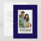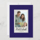 Family photo, classic simple and elegant navy personalized with your name and a sweet blessing on the back Hannukkah holiday card . Clean modern design. Jewish holiday greeting card.