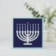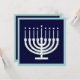 Um menorah lunático nos círculos do azul e do verde faz um convite de acolhimento a sua celebração de Hanukkah.