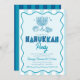 Convite Hanukkah Turquoise Fun Typography Doodles Stripes